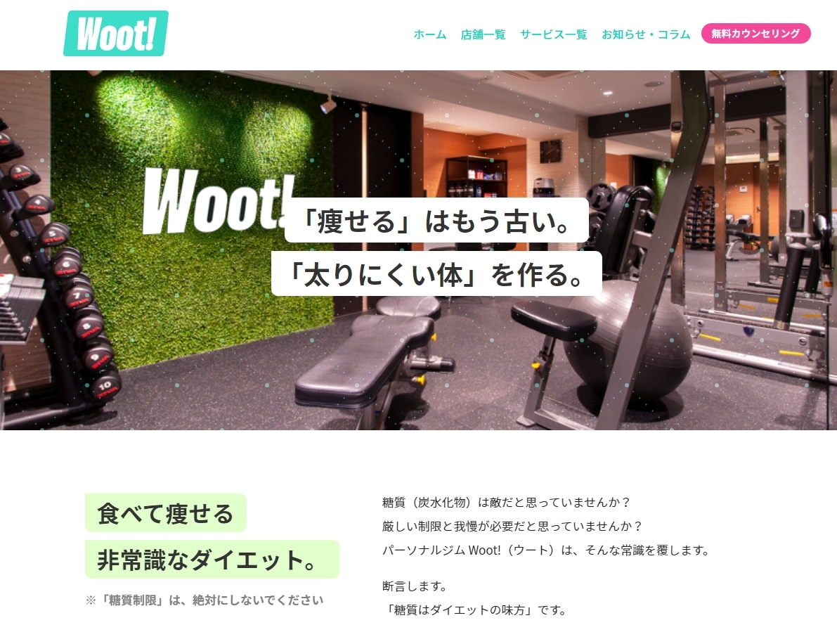 パーソナルジム Woot!池袋店は、「食べてやせる非常識なダイエット」を推奨しているパーソナルトレーニングジム。