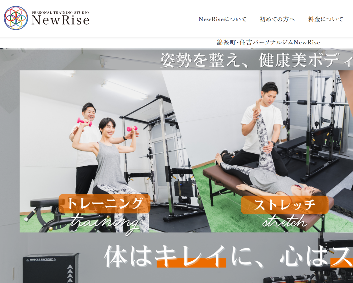 | PERSONAL TRAINING STUDIO New Rise(ニューライズ) | 33,000円 | 月額:22,000円(30分/4回) | 徒歩1分 | https://newriseg.com/ |