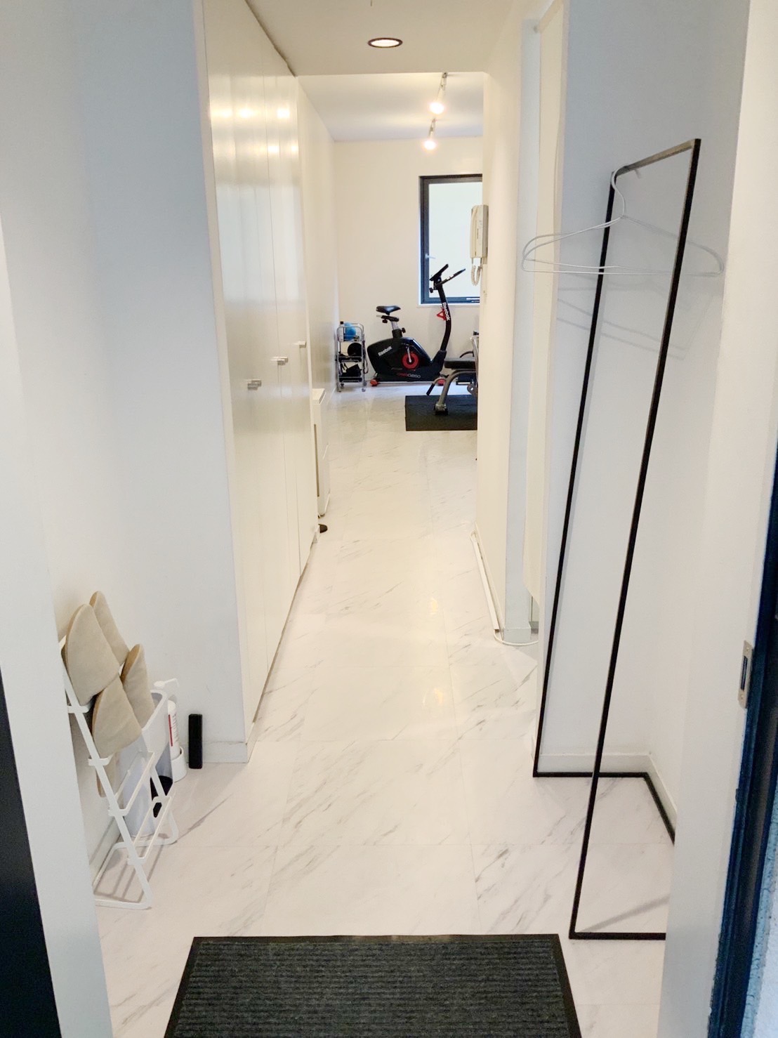 白を基調とした明るいトレーニングルームで、コンパクトなスペースながら、いろいろなトレーニングメニューが出来るように器具などが工夫して配置されていました。トレーナーの方はとても優しく、現状のヒアリングからメニューの組み立てと説明、トレーニングまで丁寧に見て下さいました。
